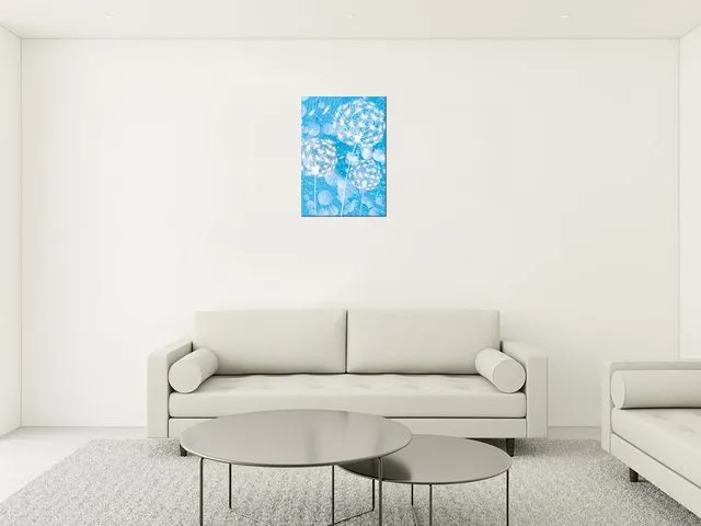 Úvod » Obrazy » Obrazy na plátne » Kvety » Púpavy na abstraktnom modrom pozadí