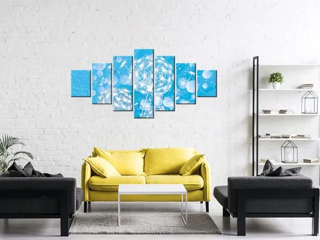 Úvod » Obrazy » Obrazy na plátne » Kvety » Púpavy na abstraktnom modrom pozadí