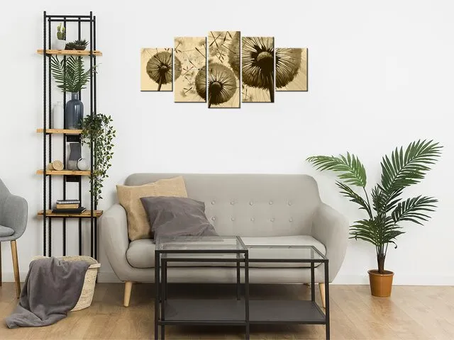 Úvod » Obrazy » Obrazy s hodinami » Púpavy na krémovom pozadí Obraz s hodinami