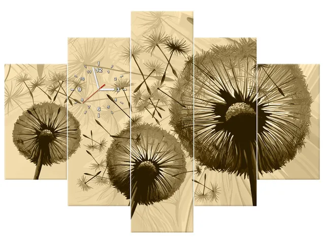 ZP4180A_3AX Púpavy na krémovom pozadí Obraz s hodinami |