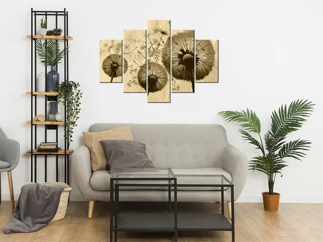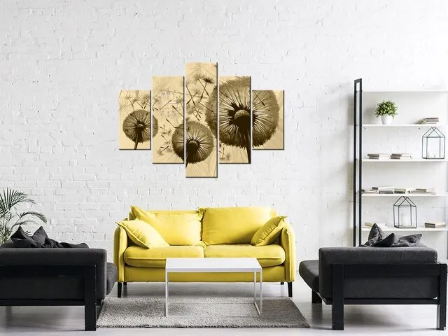 Úvod » Obrazy » Obrazy s hodinami » Púpavy na krémovom pozadí Obraz s hodinami
