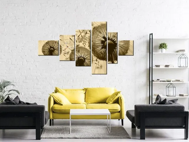Úvod » Obrazy » Obrazy s hodinami » Púpavy na krémovom pozadí Obraz s hodinami