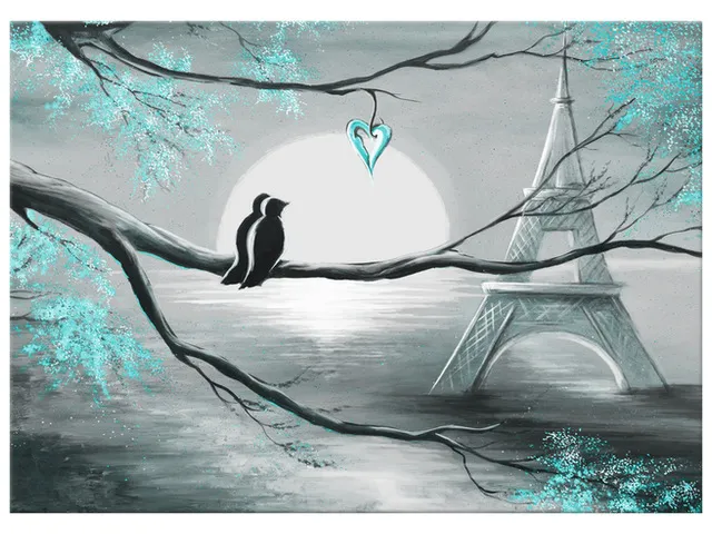 Úvod » Obrazy » Obrazy na plátne » Príroda » Romantický východ slnka v Paríži v tyrkysovom odtieni