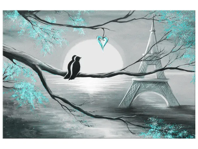 Úvod » Obrazy » Obrazy na plátne » Príroda » Romantický východ slnka v Paríži v tyrkysovom odtieni