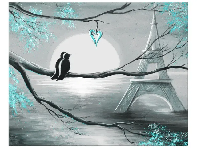 Úvod » Obrazy » Obrazy na plátne » Príroda » Romantický východ slnka v Paríži v tyrkysovom odtieni
