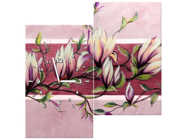 Úvod » Obrazy » Obrazy s hodinami » Sladkosť magnólie v práškovej ružovej farbe Obraz s hodinami