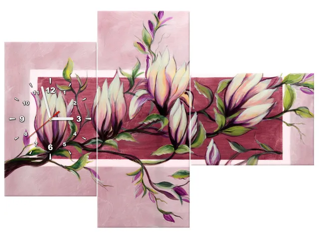 Úvod » Obrazy » Obrazy s hodinami » Sladkosť magnólie v práškovej ružovej farbe Obraz s hodinami