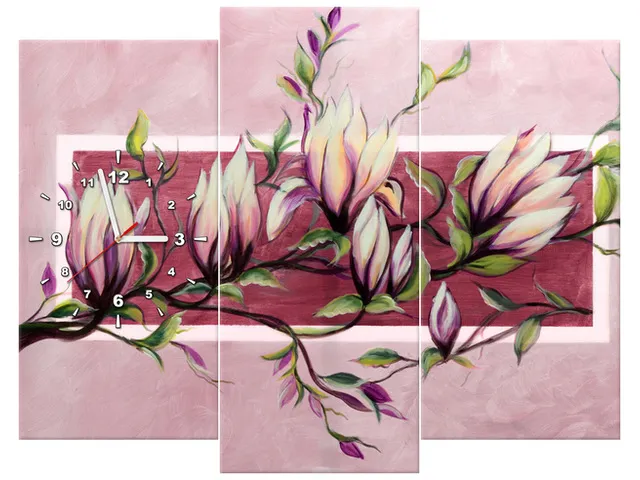 Úvod » Obrazy » Obrazy s hodinami » Sladkosť magnólie v práškovej ružovej farbe Obraz s hodinami