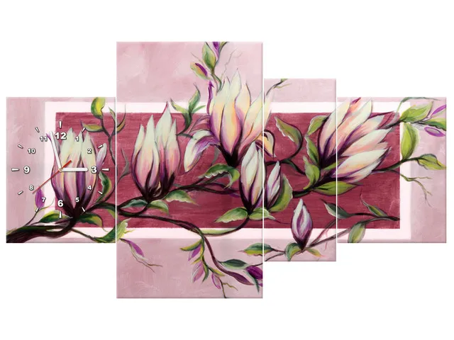 Úvod » Obrazy » Obrazy s hodinami » Sladkosť magnólie v práškovej ružovej farbe Obraz s hodinami
