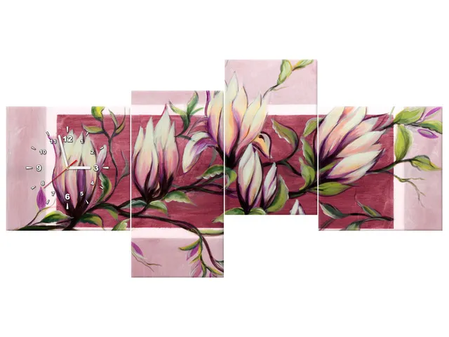 Úvod » Obrazy » Obrazy s hodinami » Sladkosť magnólie v práškovej ružovej farbe Obraz s hodinami