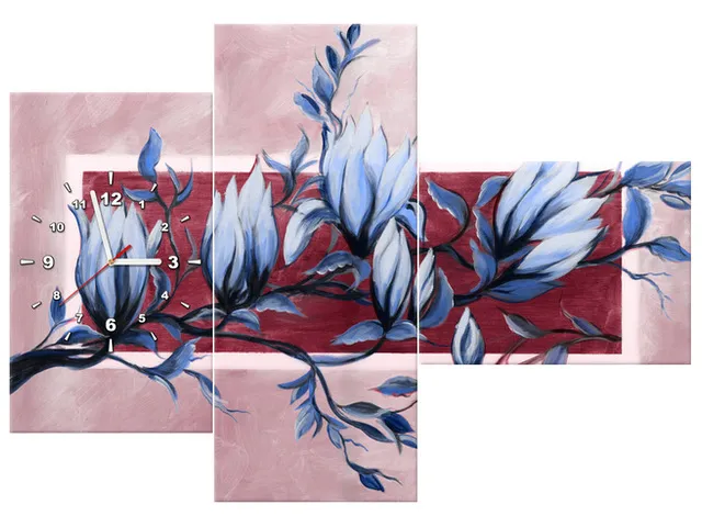 ZP4717A_3AX Sladkosť modro-ružovej magnólie Obraz s hodinami |