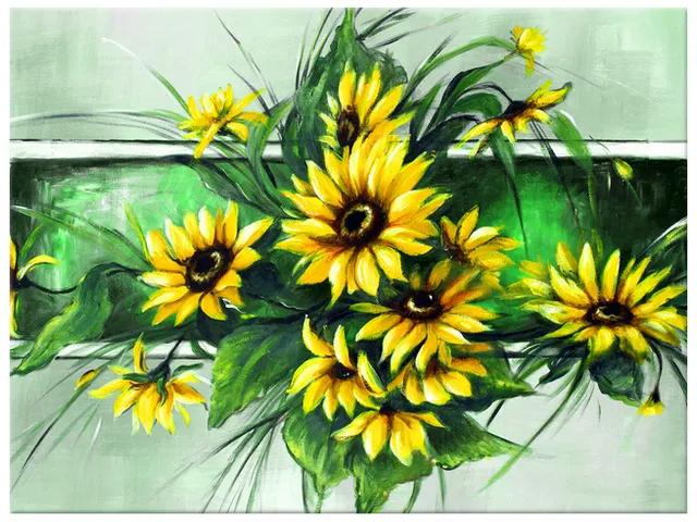 Úvod » Obrazy » Obrazy na plátne » Kvety » Slnečnice v zelenom - Obrazy na stenu