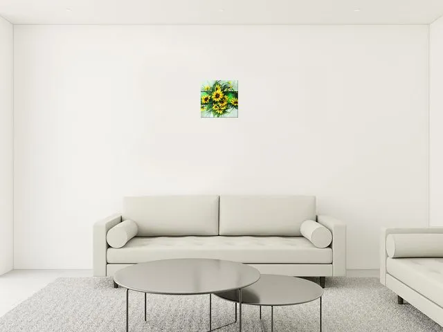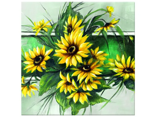 Úvod » Obrazy » Obrazy na plátne » Kvety » Slnečnice v zelenom - Obrazy na stenu