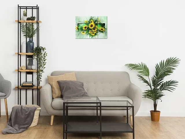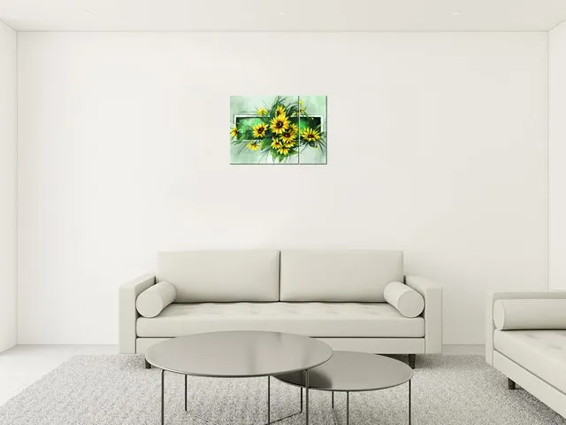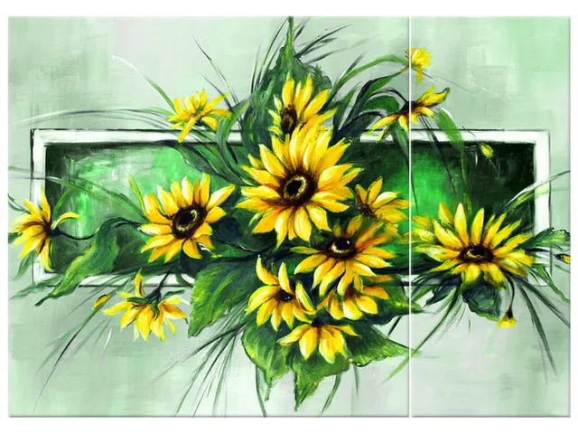 Úvod » Obrazy » Obrazy na plátne » Kvety » Slnečnice v zelenom - Obrazy na stenu