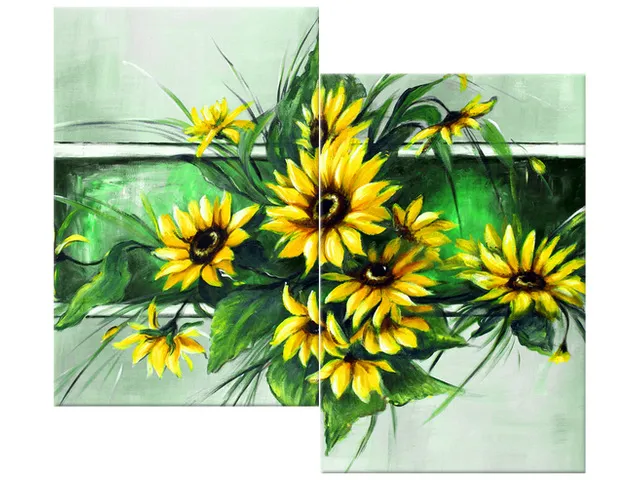 Úvod » Obrazy » Obrazy na plátne » Kvety » Slnečnice v zelenom - Obrazy na stenu