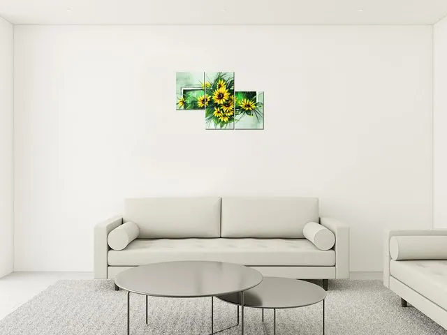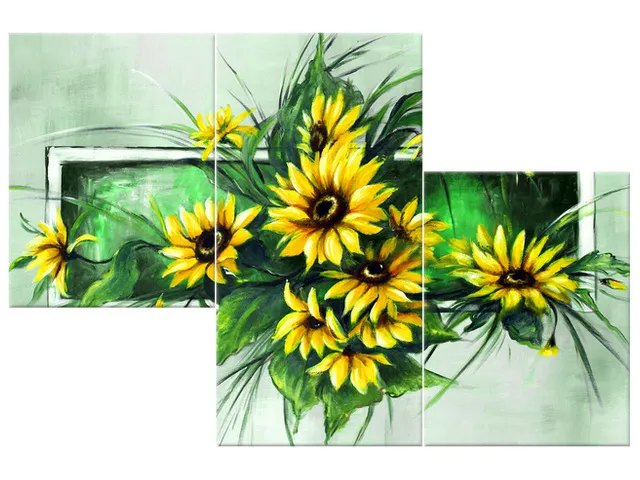 Úvod » Obrazy » Obrazy na plátne » Kvety » Slnečnice v zelenom - Obrazy na stenu