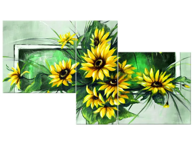 Úvod » Obrazy » Obrazy na plátne » Kvety » Slnečnice v zelenom - Obrazy na stenu