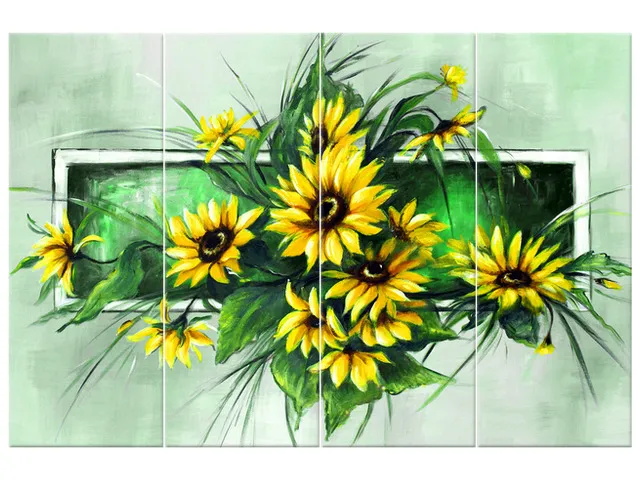 Úvod » Obrazy » Obrazy na plátne » Kvety » Slnečnice v zelenom - Obrazy na stenu