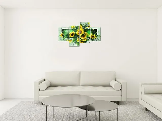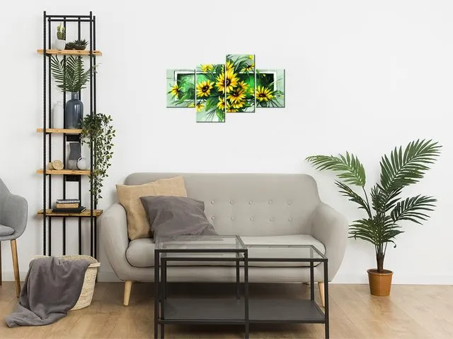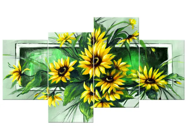 Úvod » Obrazy » Obrazy na plátne » Kvety » Slnečnice v zelenom - Obrazy na stenu