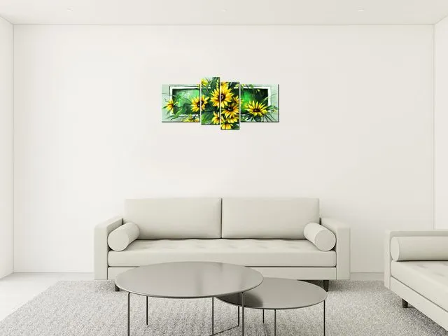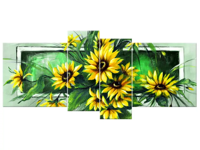 Úvod » Obrazy » Obrazy na plátne » Kvety » Slnečnice v zelenom - Obrazy na stenu