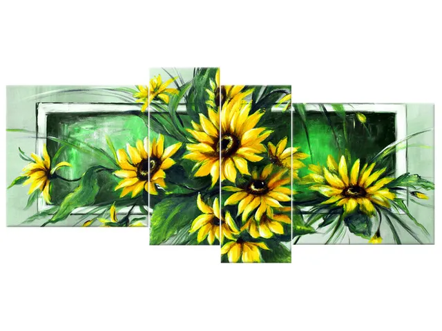 Úvod » Obrazy » Obrazy na plátne » Kvety » Slnečnice v zelenom - Obrazy na stenu
