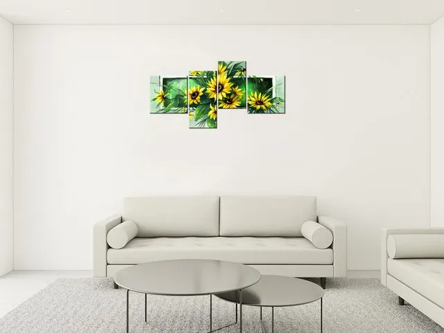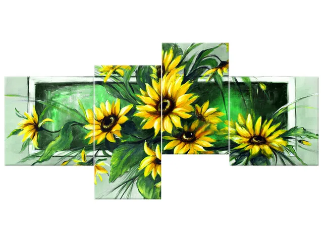 Úvod » Obrazy » Obrazy na plátne » Kvety » Slnečnice v zelenom - Obrazy na stenu