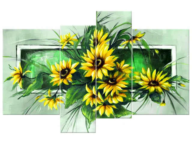 Úvod » Obrazy » Obrazy na plátne » Kvety » Slnečnice v zelenom - Obrazy na stenu