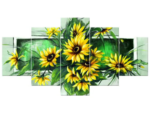 4695A_5L Slnečnice v zelenom - Obrazy na stenu |