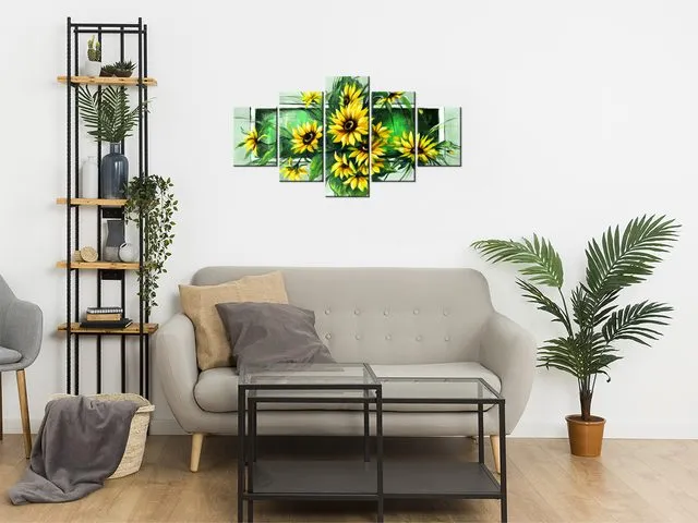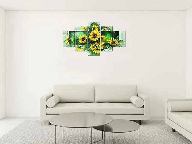 Úvod » Obrazy » Obrazy na plátne » Kvety » Slnečnice v zelenom - Obrazy na stenu