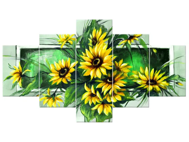 4695A_5K Slnečnice v zelenom - Obrazy na stenu |