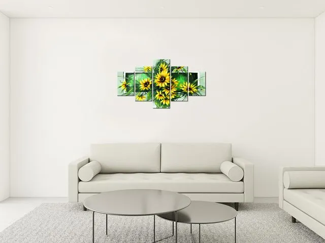 Úvod » Obrazy » Obrazy na plátne » Kvety » Slnečnice v zelenom - Obrazy na stenu