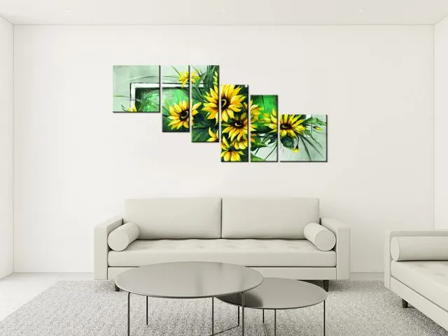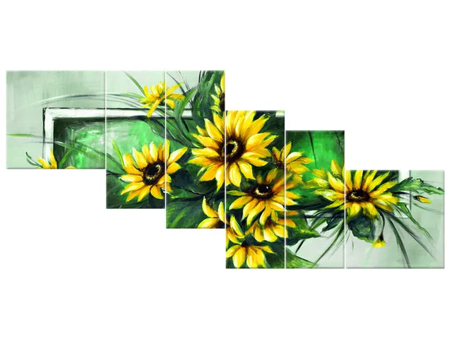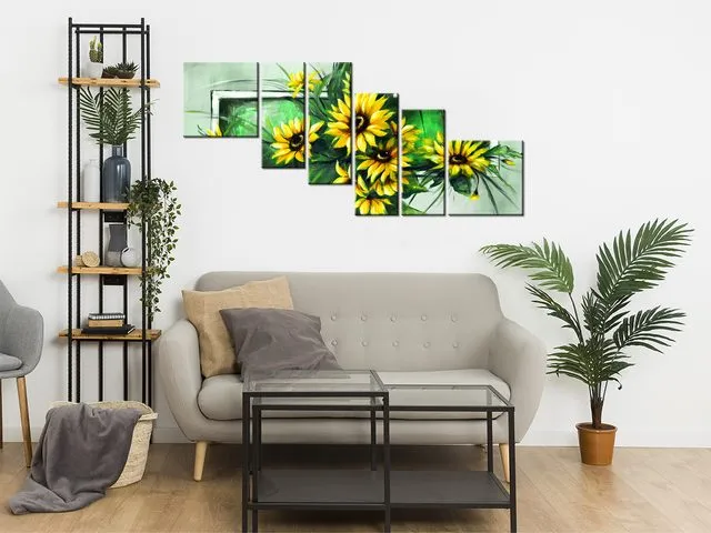 Úvod » Obrazy » Obrazy na plátne » Kvety » Slnečnice v zelenom - Obrazy na stenu