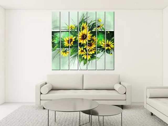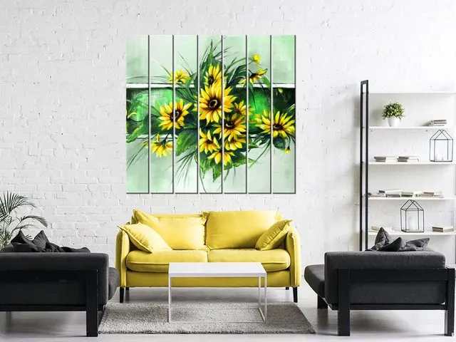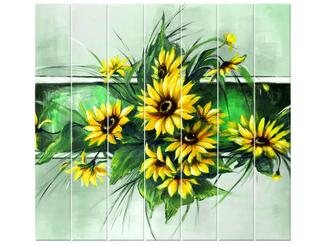 Úvod » Obrazy » Obrazy na plátne » Kvety » Slnečnice v zelenom - Obrazy na stenu