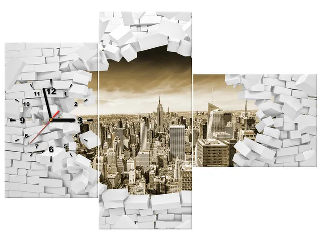 ZP4711A_3AW Stena s výhľadom na mesto v sépii Obraz s hodinami |