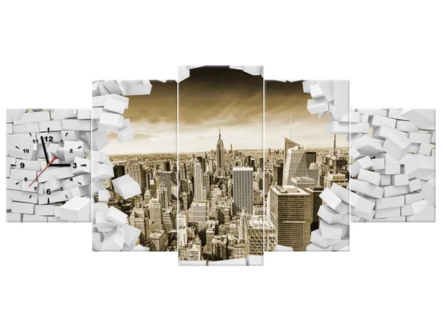 Barion Pixel Stena s výhľadom na mesto v sépii Obraz s hodinami