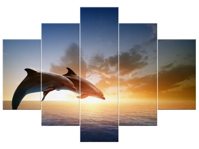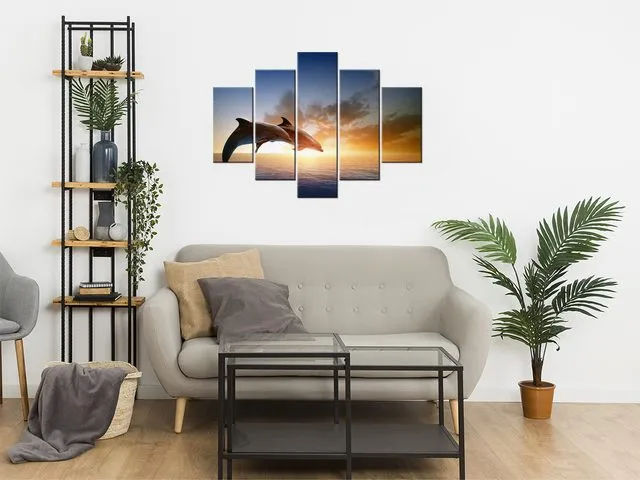 1358A_5A Štýlový obraz na plátne Delfíny |