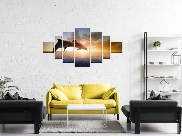 Úvod » Obrazy » Obrazy na plátne » Príroda » Štýlový obraz na plátne Delfíny