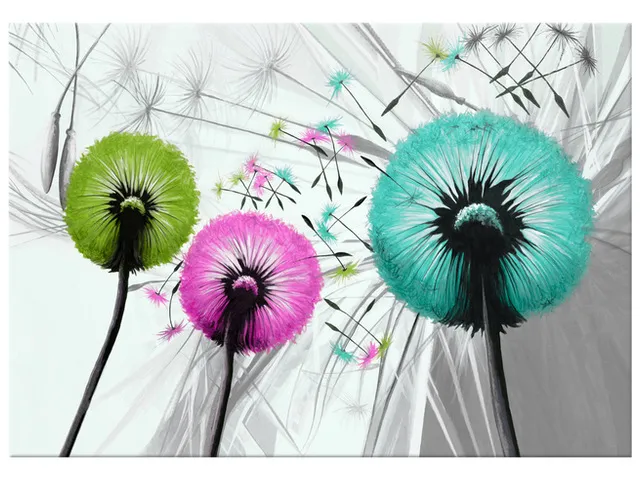 Úvod » Obrazy » Obrazy na plátne » Kvety » Štýlový obraz na plátne Farebné púpavy