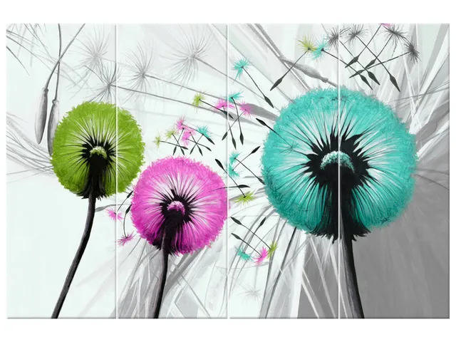 Úvod » Obrazy » Obrazy na plátne » Kvety » Štýlový obraz na plátne Farebné púpavy
