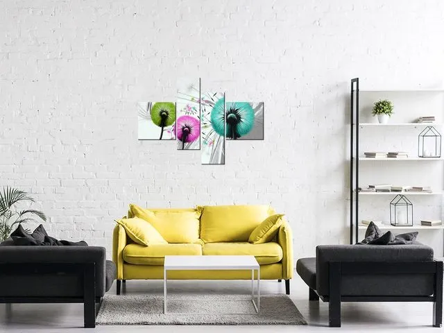 Úvod » Obrazy » Obrazy na plátne » Kvety » Štýlový obraz na plátne Farebné púpavy