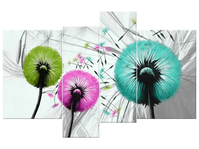 Úvod » Obrazy » Obrazy na plátne » Kvety » Štýlový obraz na plátne Farebné púpavy