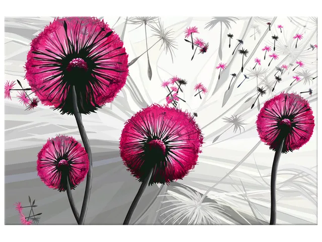 Úvod » Obrazy » Obrazy na plátne » Kvety » Štýlový obraz na plátne Púpavy v amarante