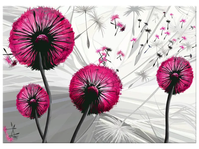 Úvod » Obrazy » Obrazy na plátne » Kvety » Štýlový obraz na plátne Púpavy v amarante