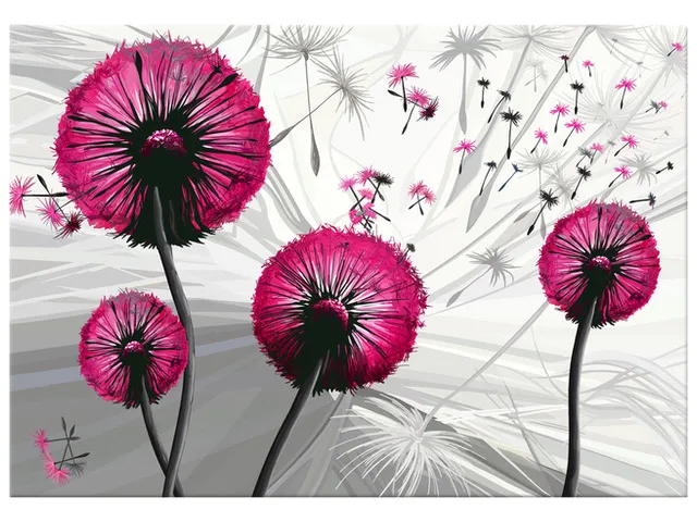 Úvod » Obrazy » Obrazy na plátne » Kvety » Štýlový obraz na plátne Púpavy v amarante