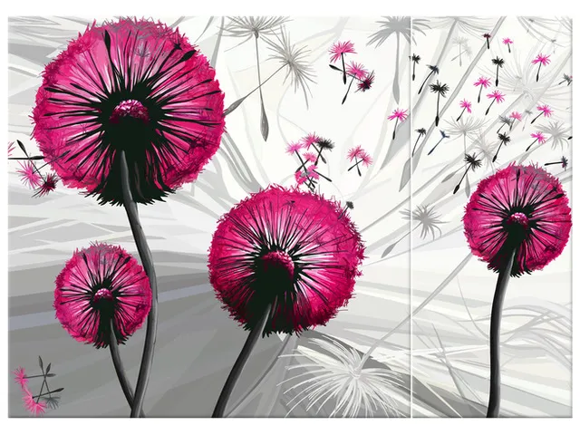 Úvod » Obrazy » Obrazy na plátne » Kvety » Štýlový obraz na plátne Púpavy v amarante