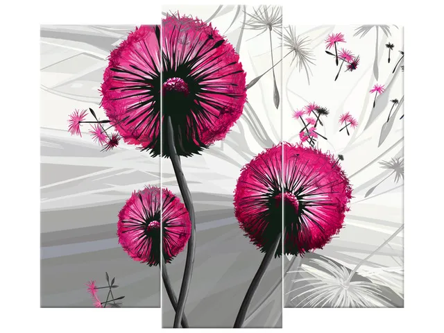 Úvod » Obrazy » Obrazy na plátne » Kvety » Štýlový obraz na plátne Púpavy v amarante