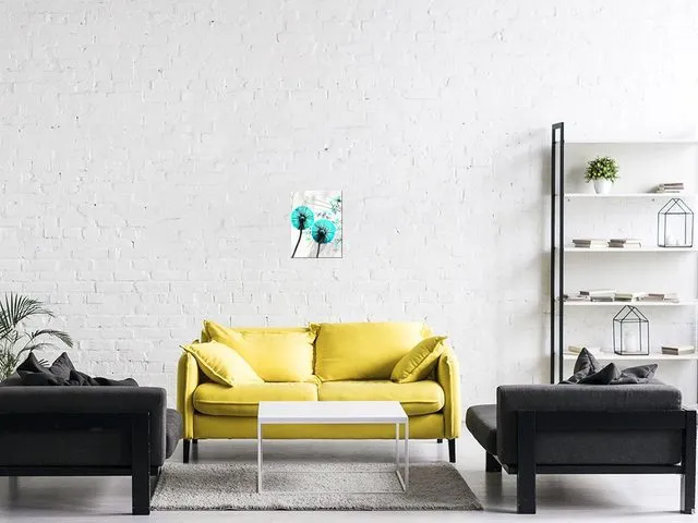 Štýlový obraz na plátne Púpavy v tyrkysovej farbe