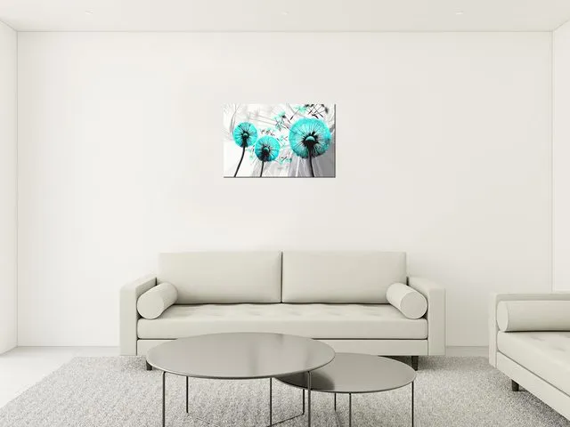Štýlový obraz na plátne Púpavy v tyrkysovej farbe
