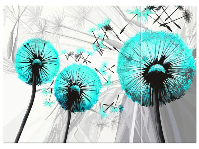 4029A_3AX Štýlový obraz na plátne Púpavy v tyrkysovej farbe |