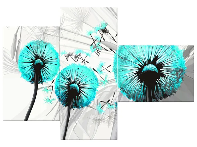 4029A_3AX Štýlový obraz na plátne Púpavy v tyrkysovej farbe |